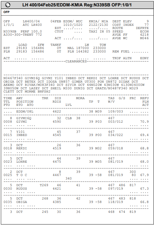 I will prepare an as-real-as-it-gets Operation Flightplan (OFP) for your flight in the flight simulator.